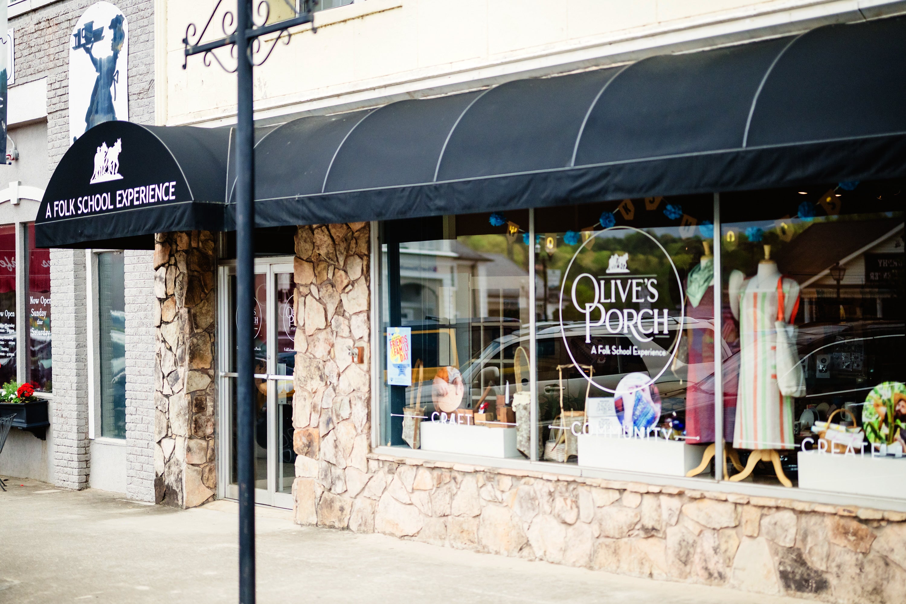 Named after the school’s co-founder Olive Dame Campbell, Olive’s Porch is a Folk School experience in downtown Murphy, North Carolina. Located at 27 Peachtree Street, Olive’s Porch features an educational studio for community workshops, a retail shop showcasing the work of local and regional Appalachian artists, and a studio space dedicated to the Artist in Residence Program.